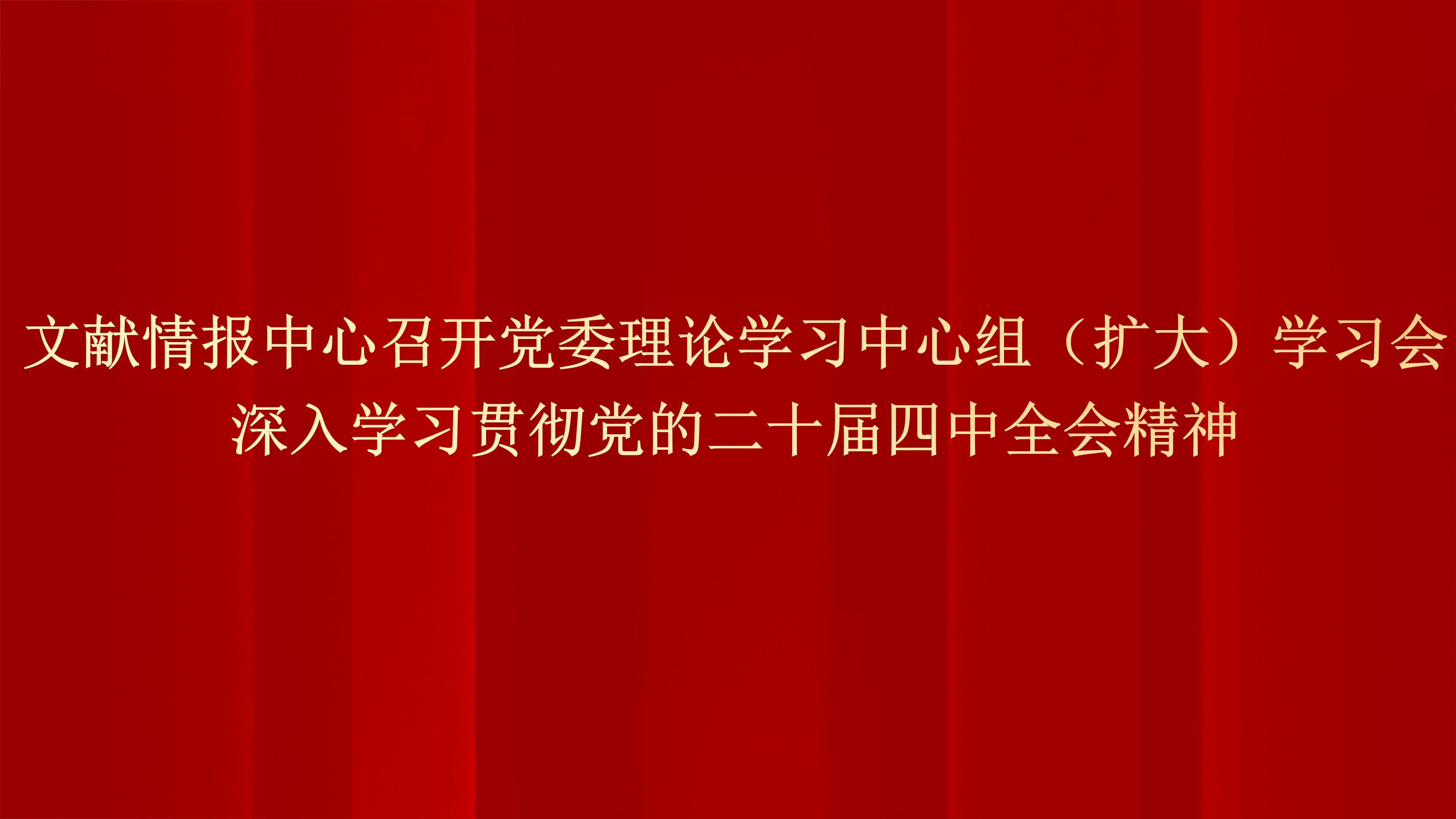 2025年11月26日,中國科學院文獻情報中心(以下簡稱文獻中心)召開黨委理論學習中心組會,深入學習貫徹黨的二十屆四中全會精神。文獻中心黨委委員、紀委委員、部門正副主任、黨支部書記、工會委員會委員、團委委員、婦委會委員、統戰人士、青年理論學習小組成員參加會議。會...